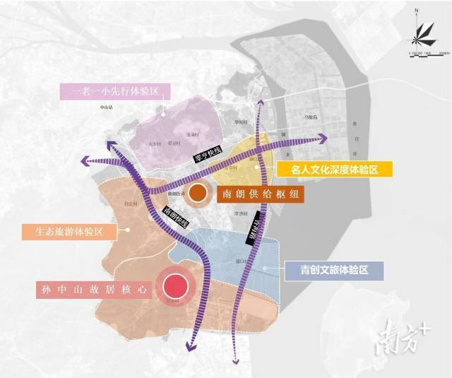 翠亨新区“一核一枢三廊四区”全域旅游格局。