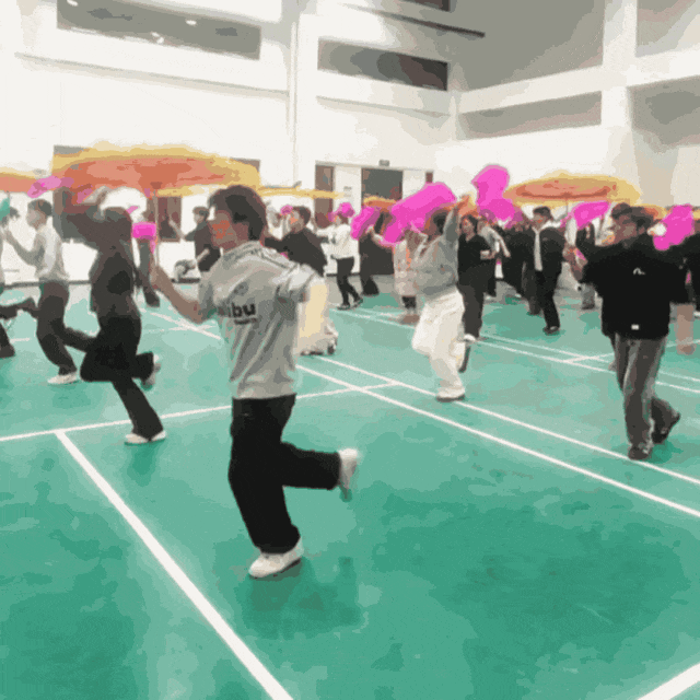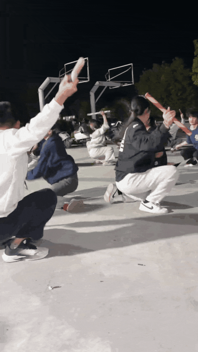 大学生们跟着练得