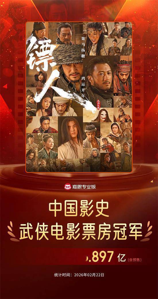 目前,《镖人:风起大漠》已从开局的第四名一举跃升至单日第二,档期内票房已达8亿。不仅在档期后半实现对《熊出没·年年有熊》的反超,跻身前三,也超越2025年春节档上映的《射雕英雄传:侠之大者》,成功登顶中国影史武侠片票房冠军。