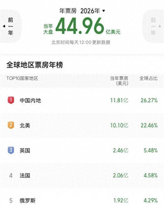截至2月23日,2026年春节档总票房突破57.4亿,观影人次突破1.19亿,连续8年实现春节档观影人次破亿的壮举,全国总放映场次超430万场的影史新纪录,观影消费习惯已然真正走进全民生活,成为广大观众春节仪式感的重要组成部分。同时,2026年度总票房顺利突破80亿,中国电影市场累计票房超11.81亿美元,超北美票房成绩,暂列全球单一市场票房冠军。